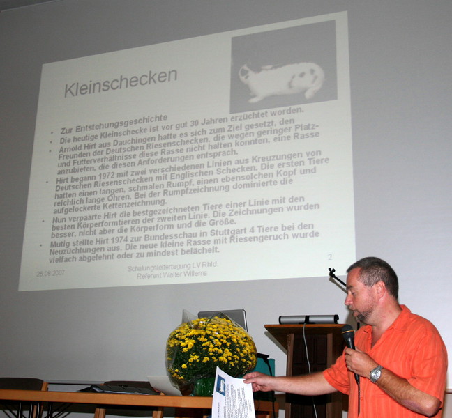 Im Rahmen der Landesverbandschulungstagungen wird in jedem Jahr eine Rasse besprochen. Da die Kleinschecken im Jahre 2006 einen runden „Geburtstag“ feierten und 30 Jahre im Standard sind, wurde ich